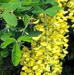 vysoký keř, v květnu až červnu výrazně, žlutě kvetoucí keř, plody černohnědé lusky obsahující
