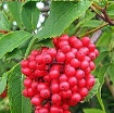 zářivě červených, poloprůsvitných plodů - peckovic, vzhledem připomínajících rybíz (ovšem hořké, pálivé