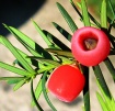 červené, kulovité až vejčité peckovičky, které na větvičkách přečkávají zimu. Jed alkaloid je